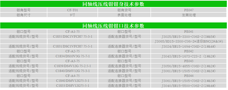 75Ω 3G-SD1、12G-SDI数字视频同轴线压接钳